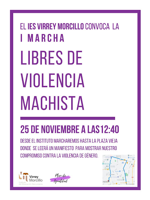 Primera gran actividad del curso organizada por el Plan de Igualdad, se convoca una marcha el día 25 de noviembre, Día por la Eliminación de la Violencia contra la Mujer, que unirá a parte de la comunidad educativa de la localidad en su reivindicación por una sociedad más justa e igualitaria libre de violencia machista.